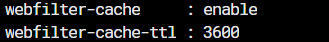 webfilter-cache-ttl : cache 되는 시간 초 단위이고 최소 300초 최대 86400초까지 설정이 가능합니다.