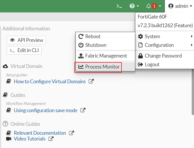 Fortigate GUI에서 Process List 확인 방법