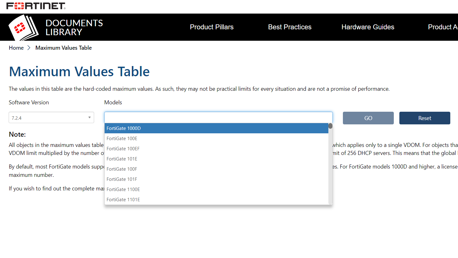https://docs.fortinet.com/max-value-table