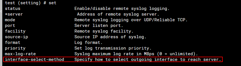 명령어 진입 후 set 명령어를 입력하면 syslog관련 설정부분이 나옵니다.
