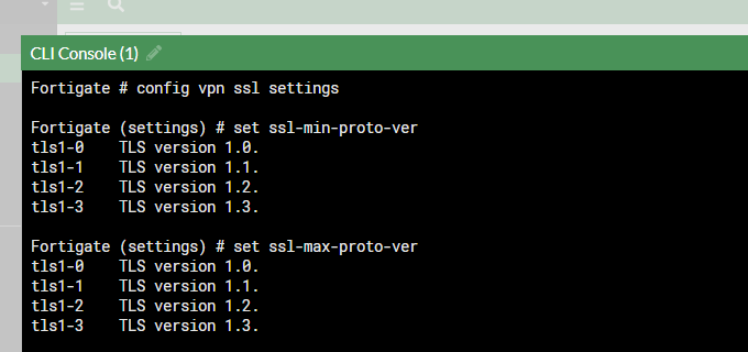 fortigate ssl vpn TLS version 설정