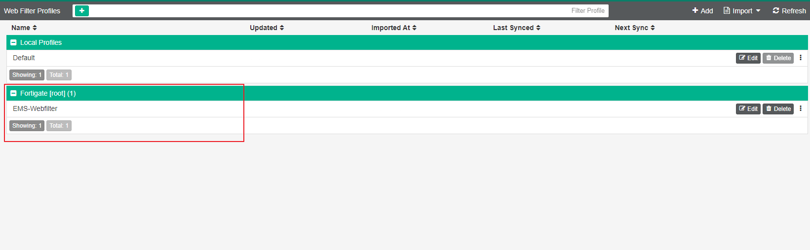 FortiClientEMS에서 FortiGate Webfilter Profile 가져오는 방법