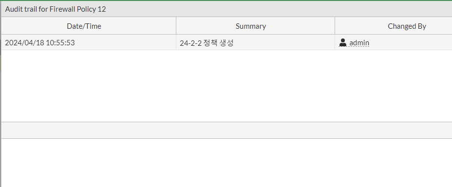 FortiOS 7.2이상부터 나온 기능이며 방화벽 정책이 생성 또는 편집될 때 기록을 남기라는 메시지를 받게 됨