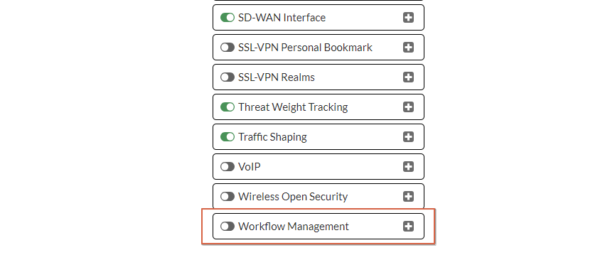 먼저 Fortigate GUI > System > Feature Visibility > Workflow Management 활성화