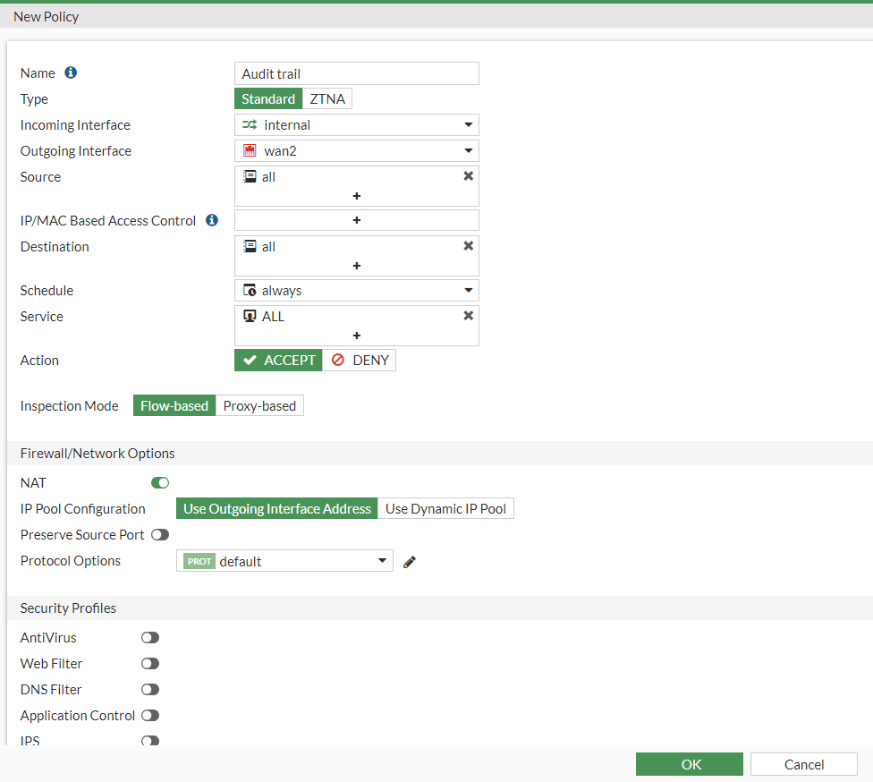 Fortigate audit trail 설정