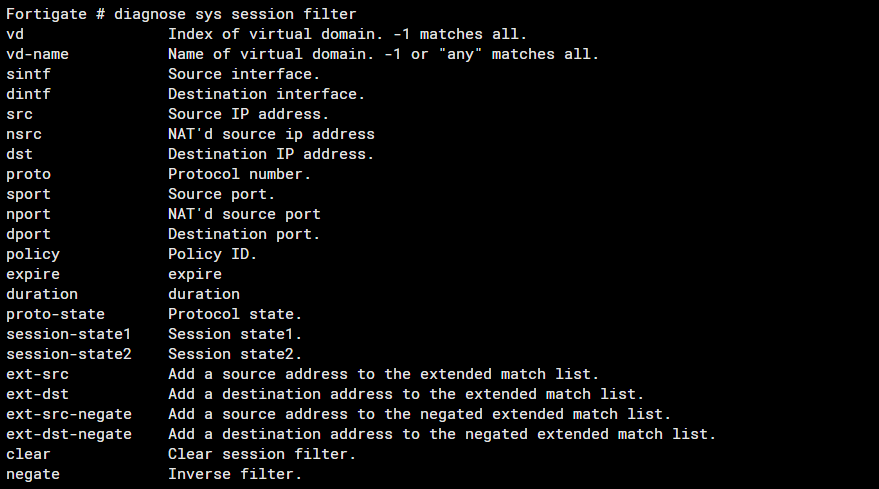 fortigate session clear 및 list 확인 방법 CLI 명령어를 통하여 fortigate의 총 session 수 확인 또는 session 요약 또는 상세보기 그리고 특정 session을 보거나 clear 하는 방법 확인해보기 get sys session status 해당