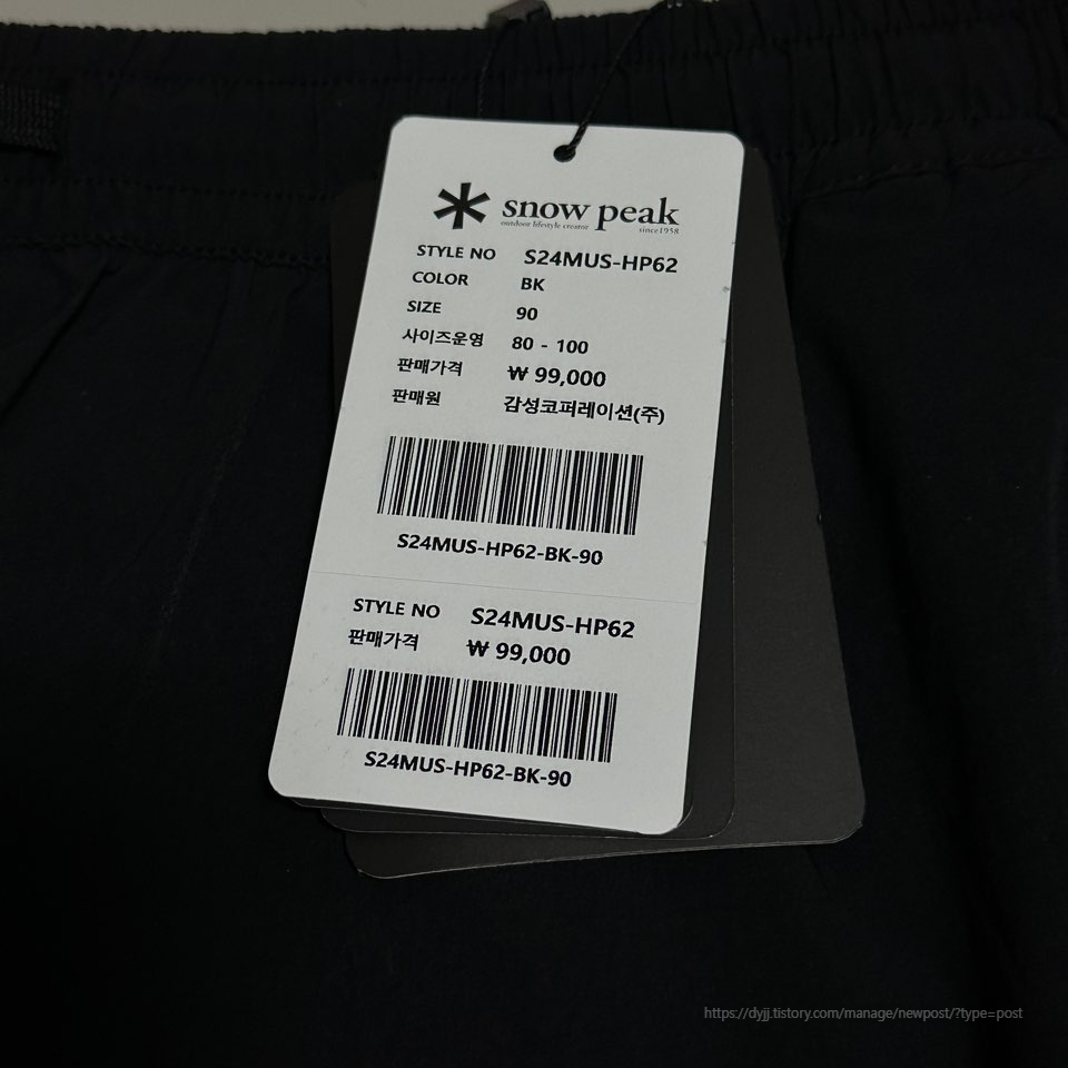 스노우피크 씬테크 우븐 카고 반바지 사이즈 90 후기 / S24MUSHP62BK