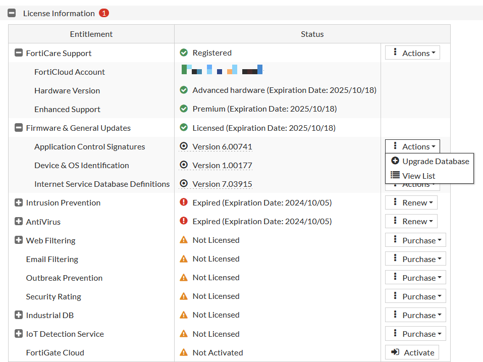 - Fortigate에 해당 License가 있어야 합니다. (Ex. IPS를 올리려고 하면 IPS License가 장비에 적용되어 있어야함) -