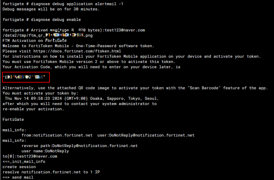 프로세스는 Fortigate가 FortiGuard에게 test123@naver.com으로 Activation Code를 보내는 요청을 함