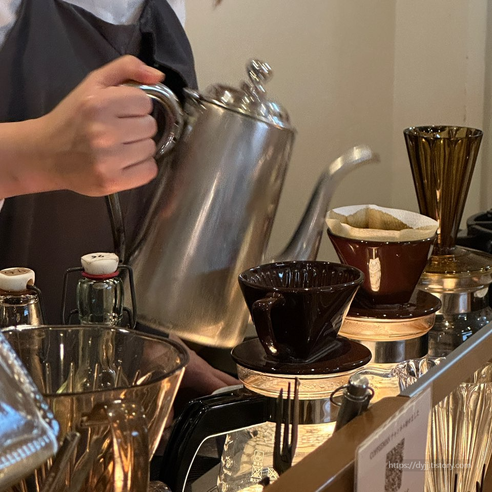 앞에 자리를 잡아서 커피 내리는걸 구경해줍니다