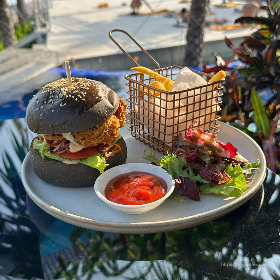 베트남공항 > 호텔 체크인 > 바로 루프탑 수영장에서 즐기고.. 밥은 나가서 먹을까 했지만 수영장이 좋아서 햄버거와 피자도 주문했어요
