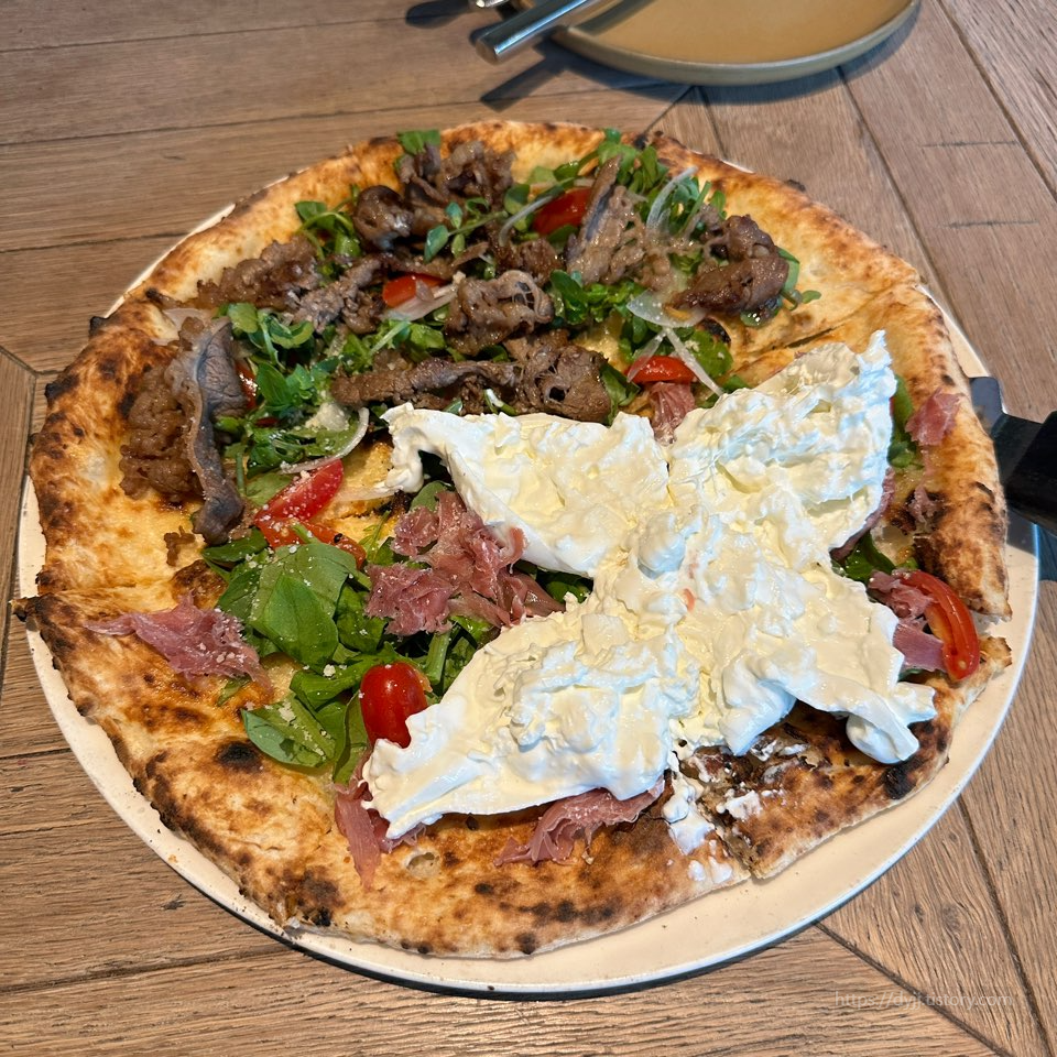 듬뿍 올라간 부라타 치즈와 햄 그리고 불고기