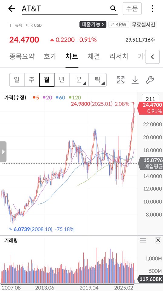 거기다 미국의 1위 통신사이고 저점대비 성장 가능성도 충분히 고려할만한 상황! / 우리나라 SK텔레콤느낌인가^^