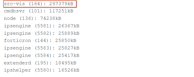 FortiGate src-vis 프로세스가 높은 Memory 사용량을 차지할 경우