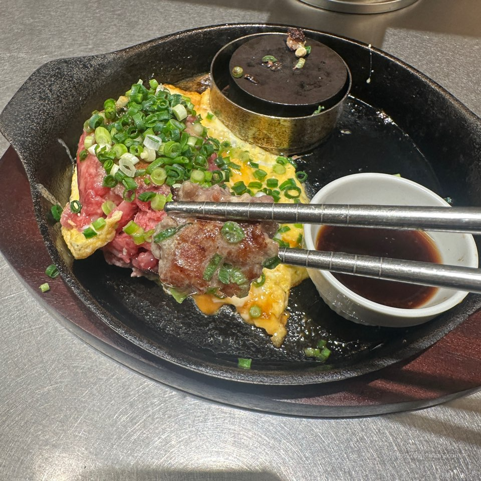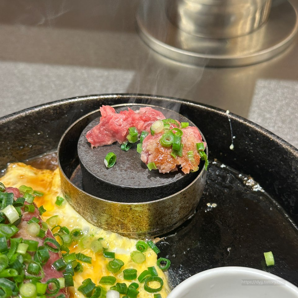다진 소고기를 개인 철판에 구워서 취향대로 먹어주면 됩니다