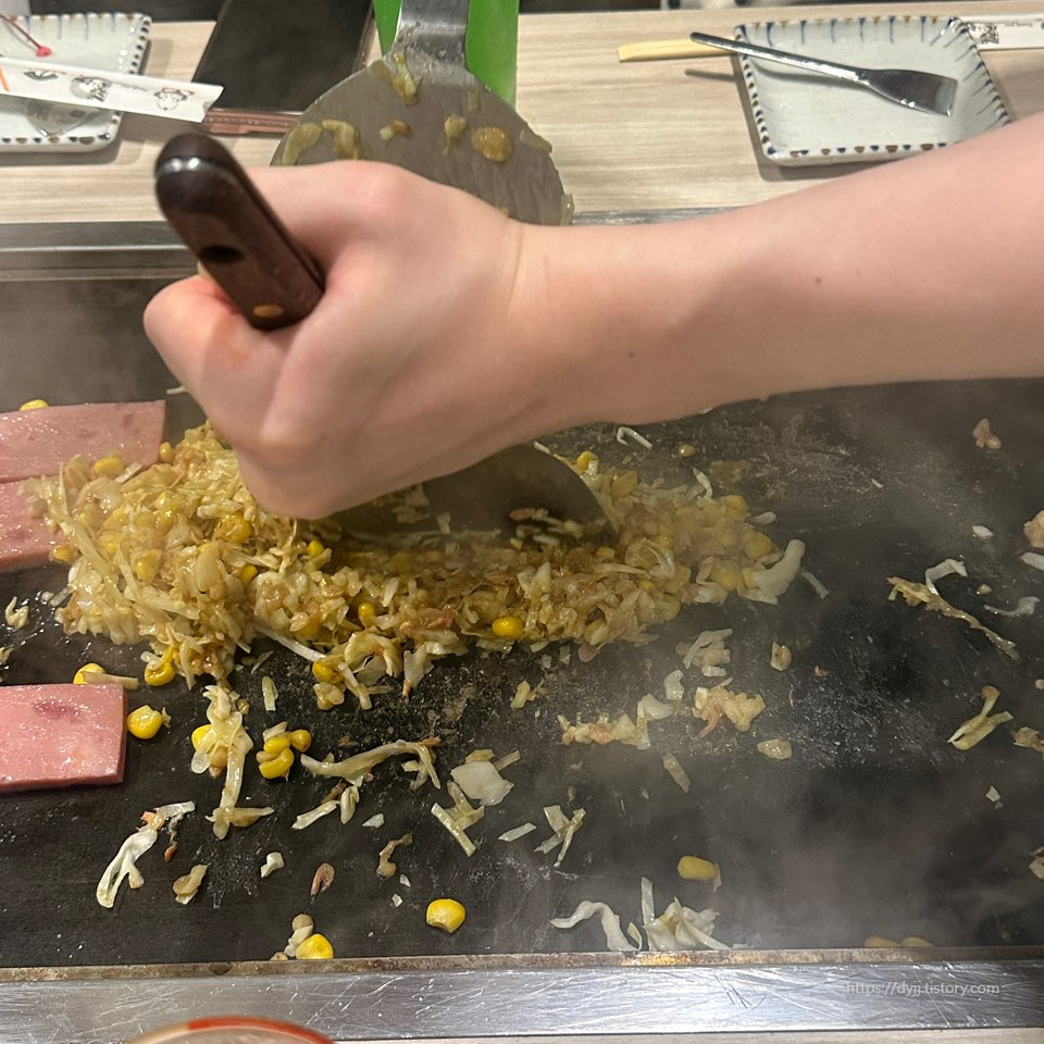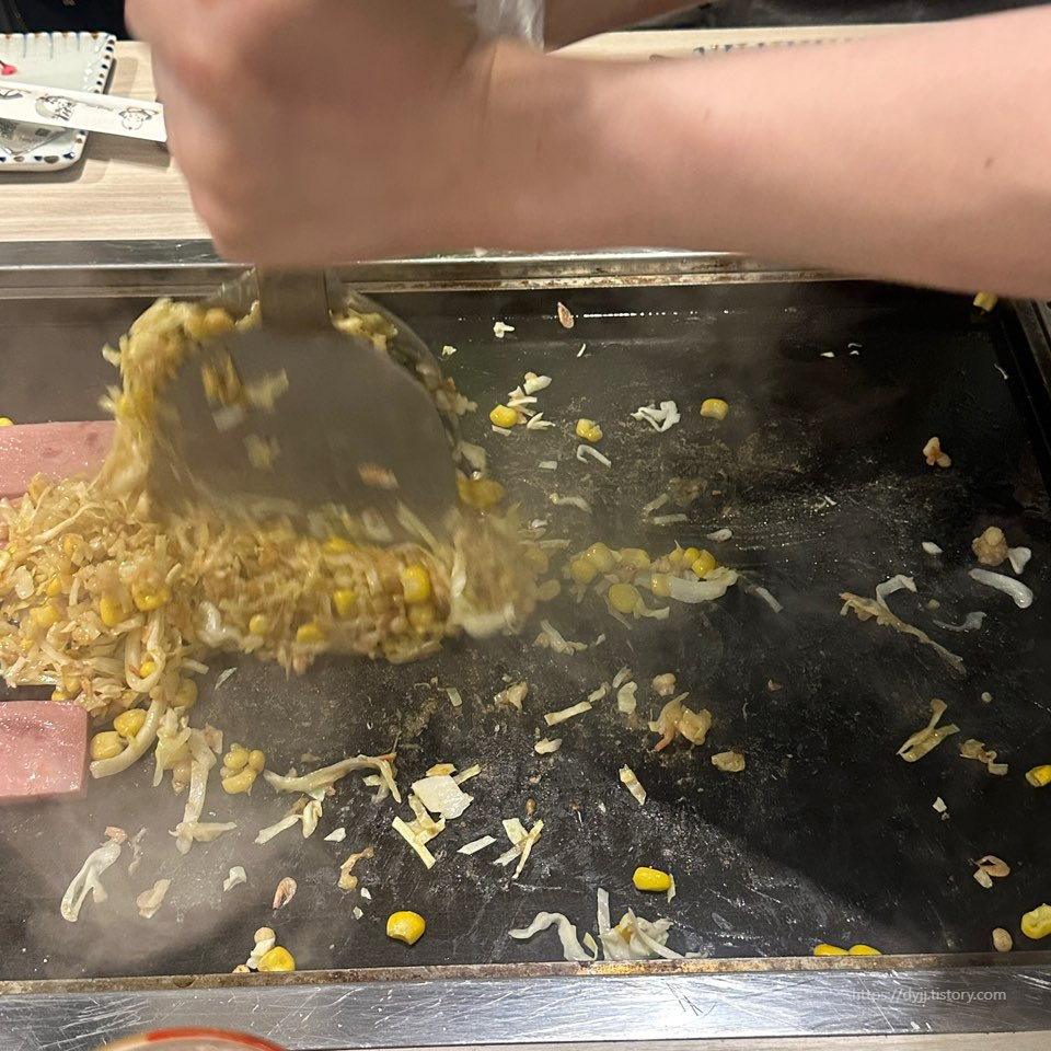 내부에선 철판에서 구워지는 소리와 직원분들이 분주합니다