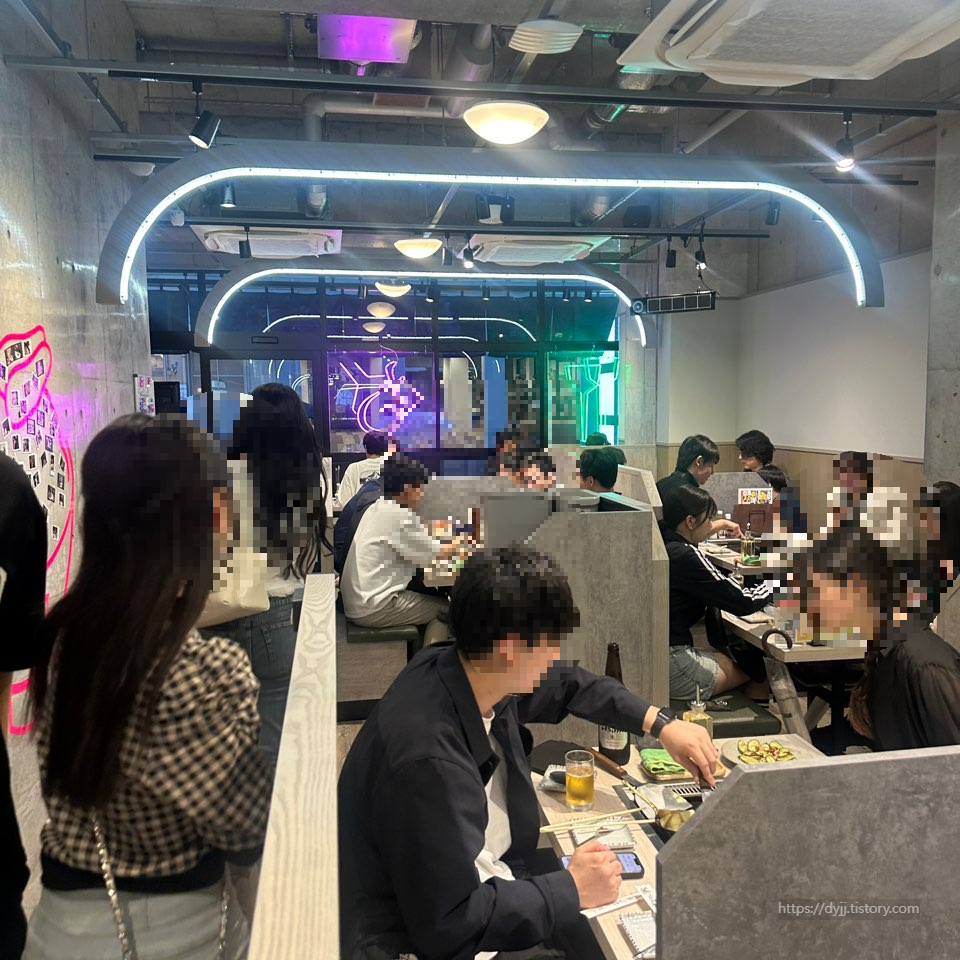 네온 간판이 눈에 띄는 외관 주말 저녁시간이었는데 역시나 손님이 많았습니다