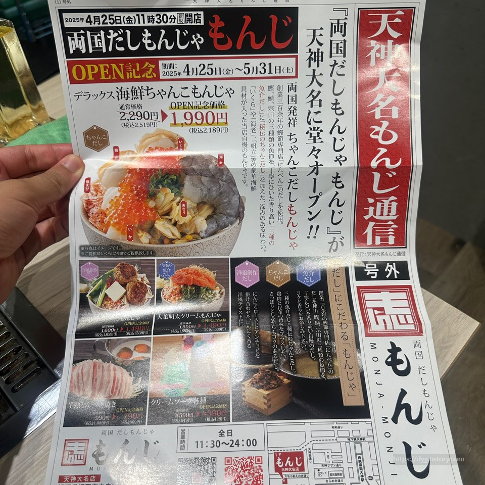 후쿠오카 텐진 다이묘 거리에 위치한 료고쿠다시몬자 몬지(両国だしもんじゃ もんじ)