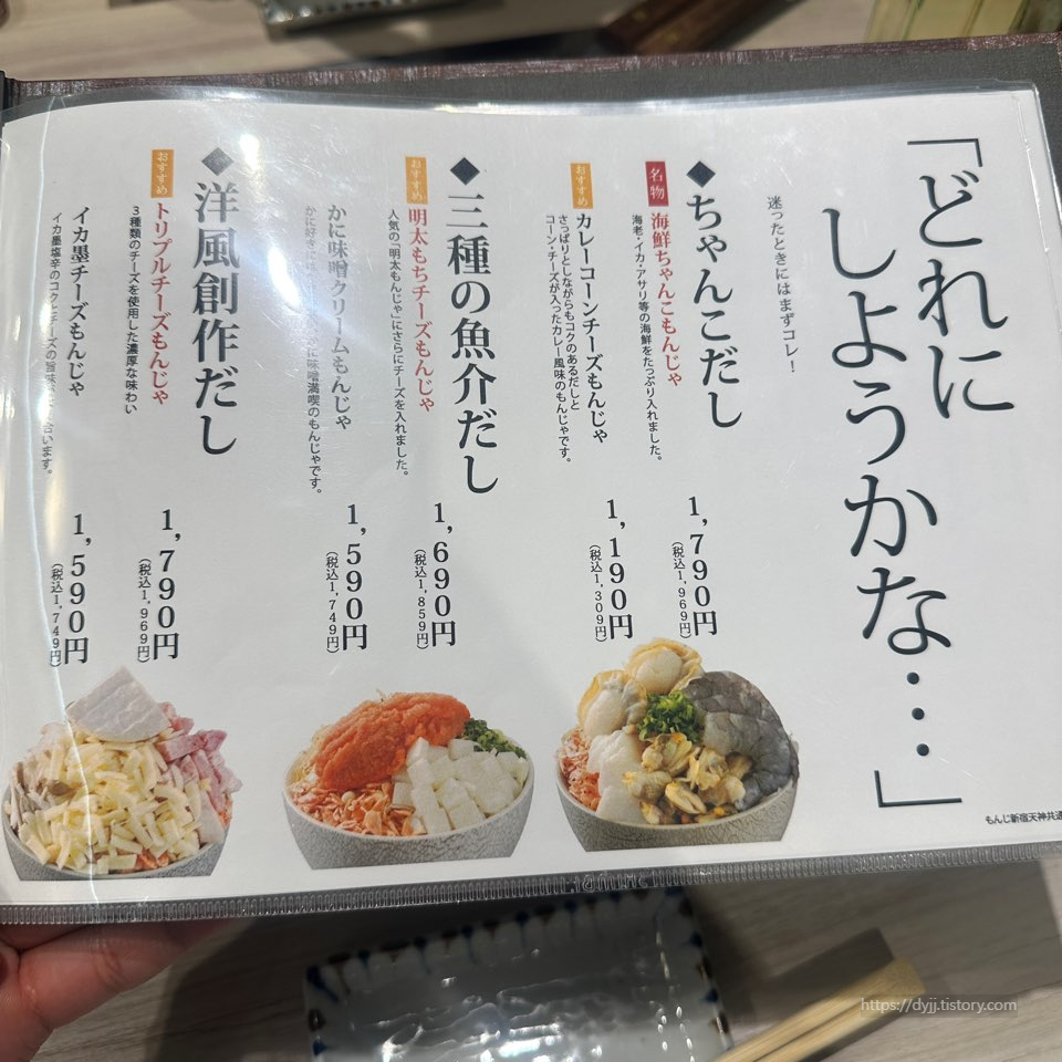 료고쿠다시몬자 몬지(両国だしもんじゃ もんじ) 메뉴판