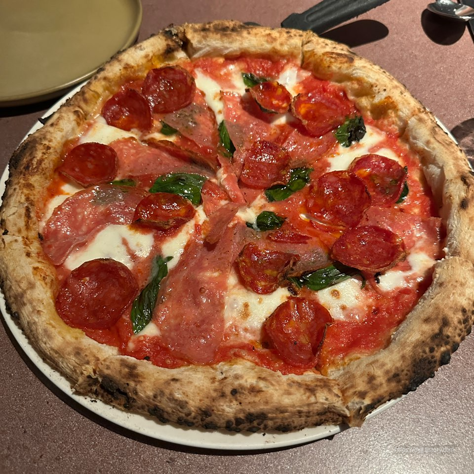 길쭉한 살라미햄이 들어간 마르게리따 피자
