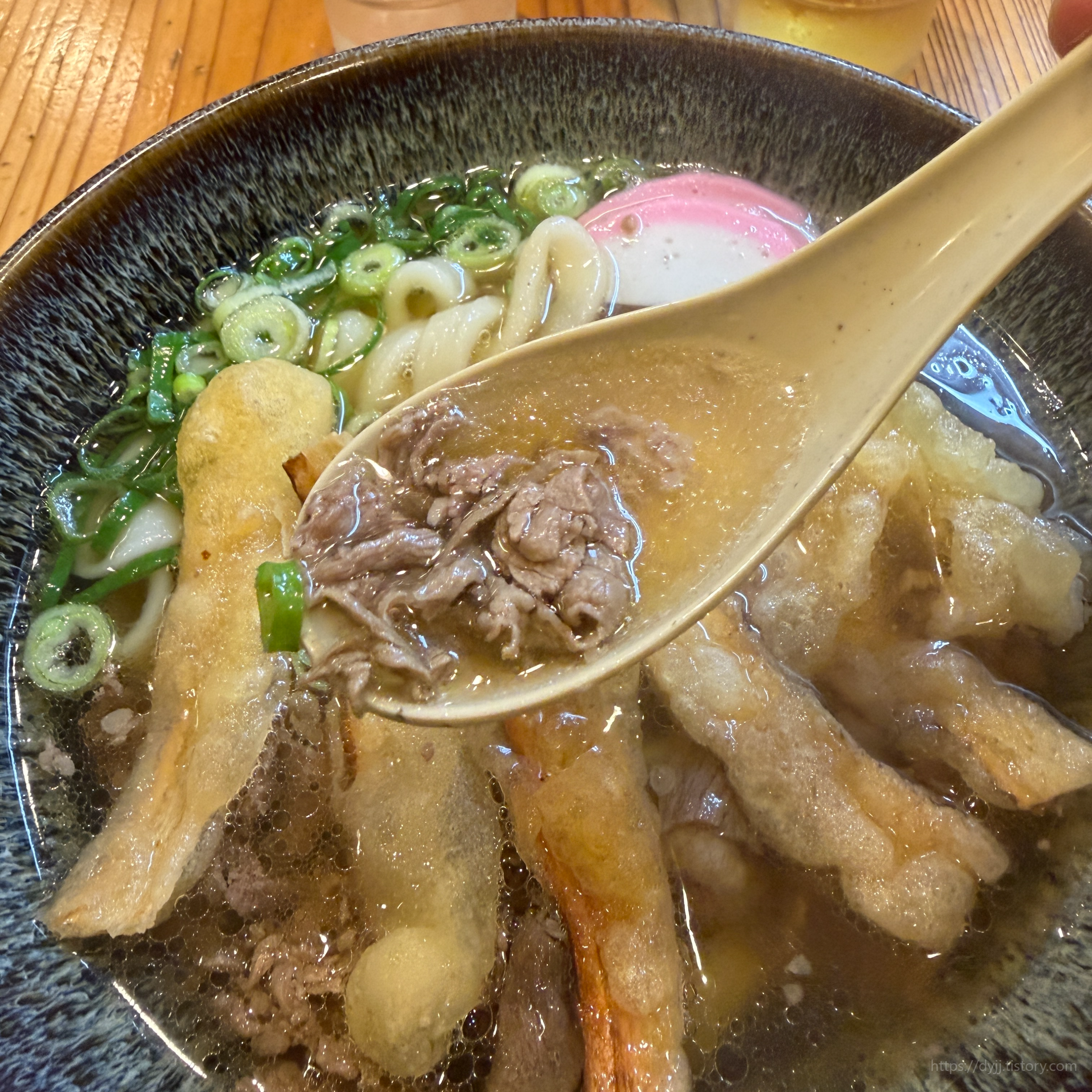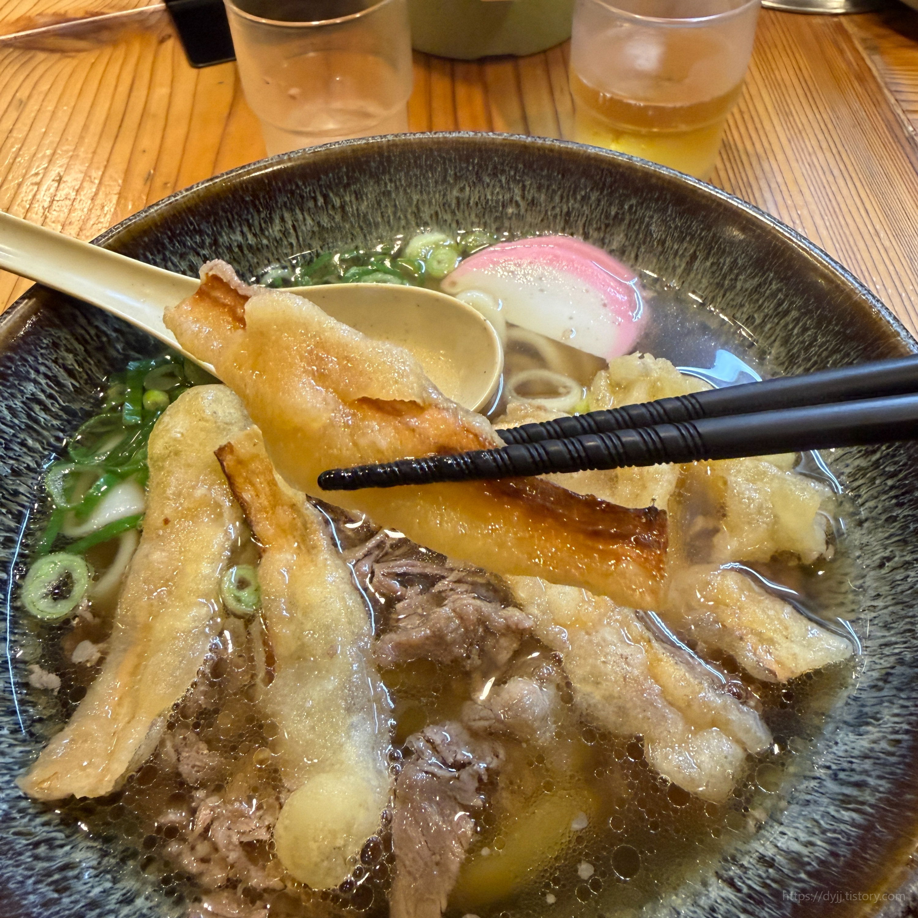 우엉을 채 썰어 튀겨낸 건데 튀김옷이 얇아서 정말 바삭했어요! 그냥 먹어도 맛있지만, 국물에 살짝 담가 풀어지게 먹으면 바삭함 + 국물 맛이 스며든 촉촉함이 섞여서 더 맛있는 느낌이에요