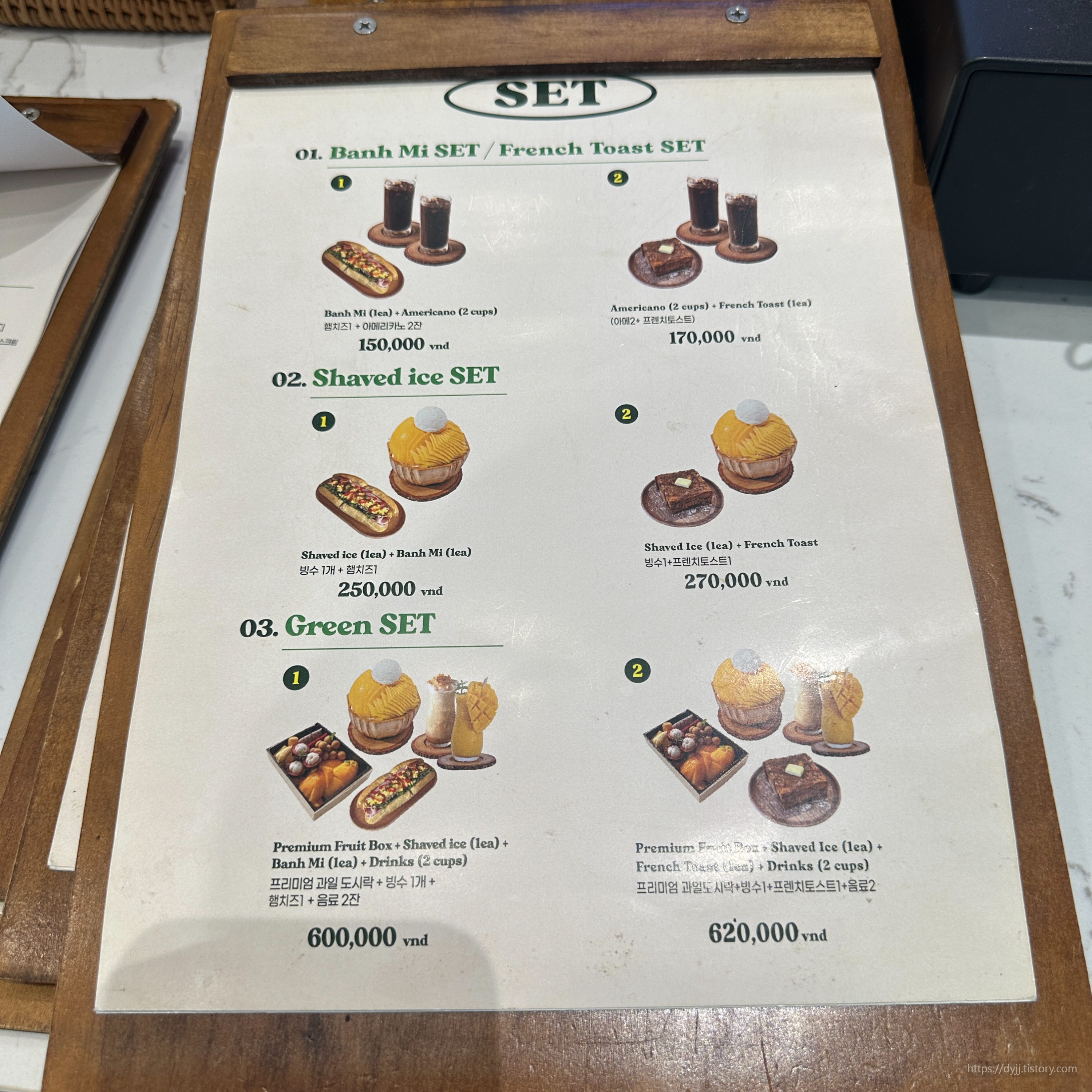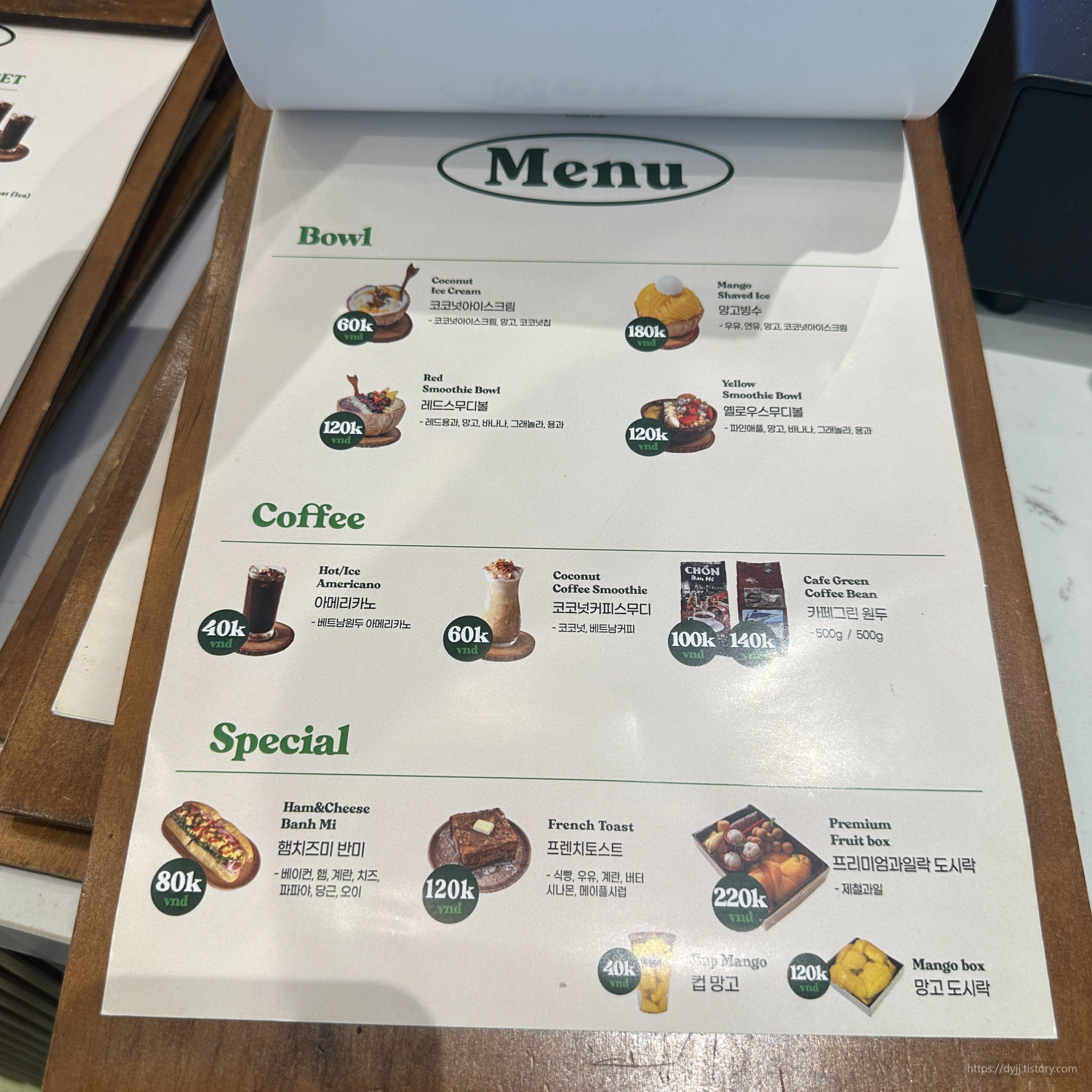 다낭 카페그린 메뉴판